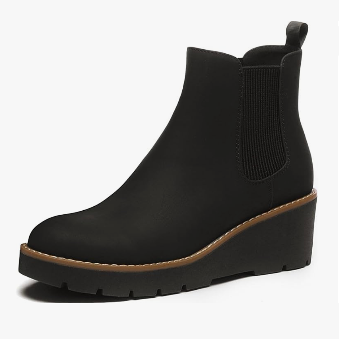 A cunha interna com suporte ergonómico reduz a pressão nos pés, joelhos e costas, aliviando a fadiga mesmo após longas horas. Caminharás leve e sem dores.